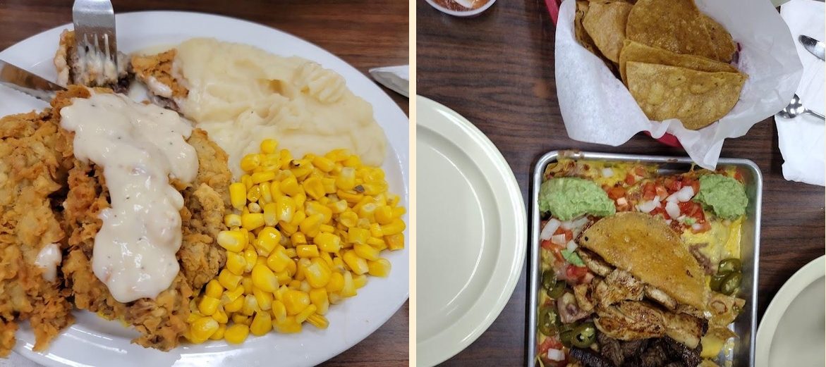 The must-try dishes include the Machacado Con Huevo Taco, Chicken Fried Steak, and Cheese Enchiladas. Each dish showcases authentic flavors and generous portions.